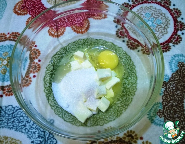 Сливочное масло комнатной температуры соединить с сахаром, яйцом, растереть.