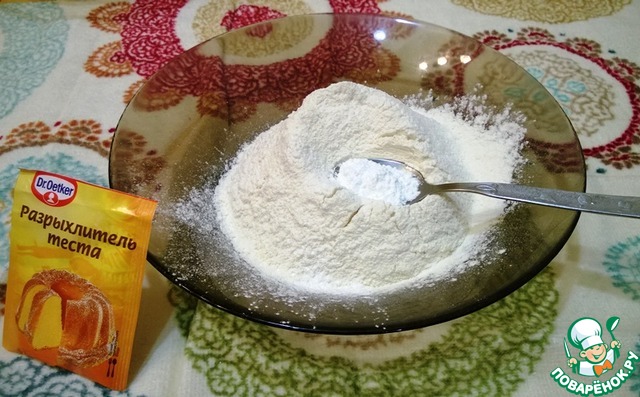 Муку соединить с разрыхлителем. У меня – от «Dr. Oetker».