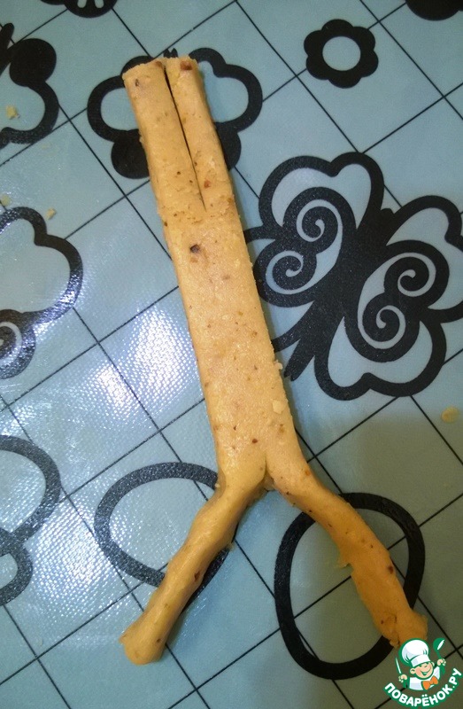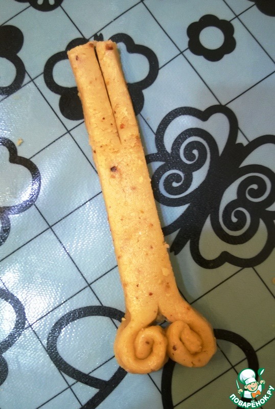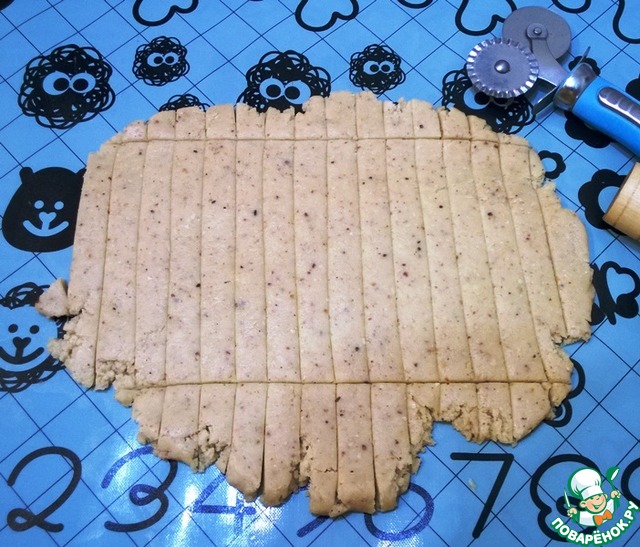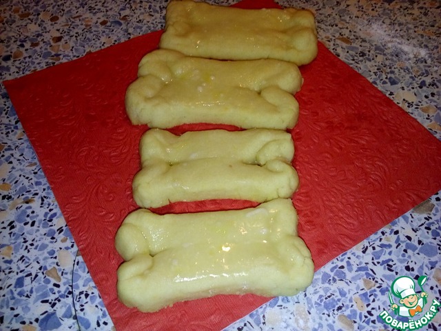 Формуем «косточки». Раскатываем тесто толщиной примерно 7-8 мм, нарезаем на полоски шириной 1 см и длиной 14-15 см.