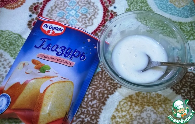 - Глазурь (со вкусом марципана от «Dr. Oetker») — 1 упак.