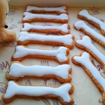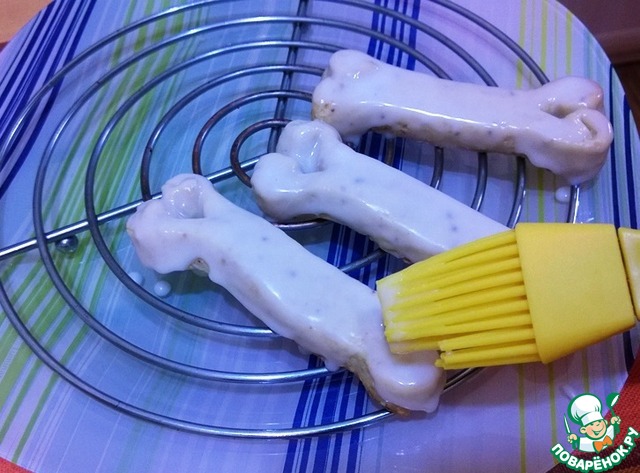 Покрываем «косточки» глазурью с помощью силиконовой кисточки. Я покрывала, держа печенье в руке, но это трудно сфотографировать :)