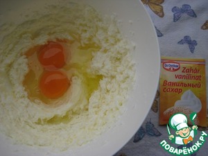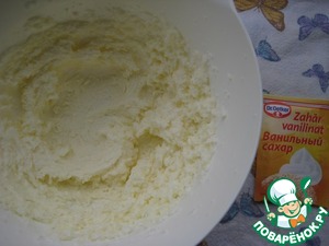 Мягкое сливочное масло взбить с сахаром и ванильным сахаром.