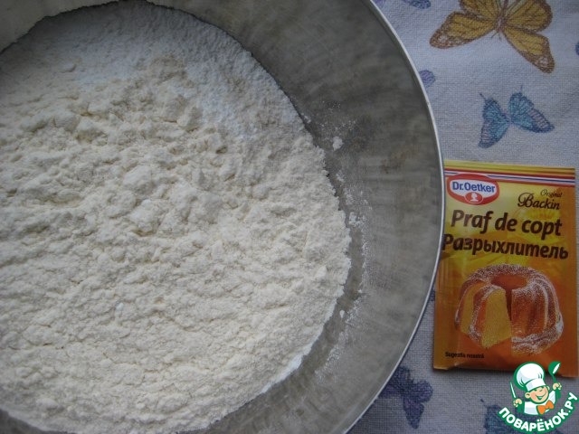Добавить в тесто соль, сок лимона и цедру. Взбить. Просеять муку с разрыхлителем, добавить в тесто.
