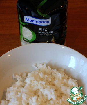 Рис Жасмин ТМ «Мистраль» отварить в 1,5 стаканах подсоленной воды в течении 12-15 минут, пока рис не впитает в себя всю воду.
