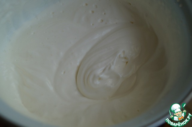 Оставшиеся 250 мл сливок взбить до консистенции густой сметаны.