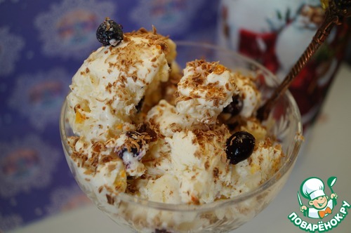 Затем аккуратно ввести в рисовую массу с ягодами взбитые сливки. Воздушную массу переложить в контейнер и отправить в морозильную камеру, минимум на 6 часов.
