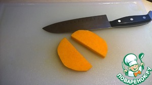 Берем тыкву и отрезаем от нее подходящий кусок.