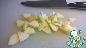 Яблоко чистим и нарезаем мелкими тонкими кусочками (чтобы соответствовали кусочкам тыквы)