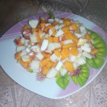 Смешиваем тыкву с яблоком. По желанию делаем заправку, смешав лимонный сок с медом и поливаем салат. Можно добавлять корицу, или другие специи по вкусу.