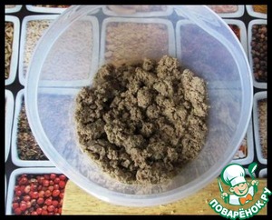 Итак, из вареного мяса крутим фарш через мелкую решетку мясорубки, можно переработать блендером.