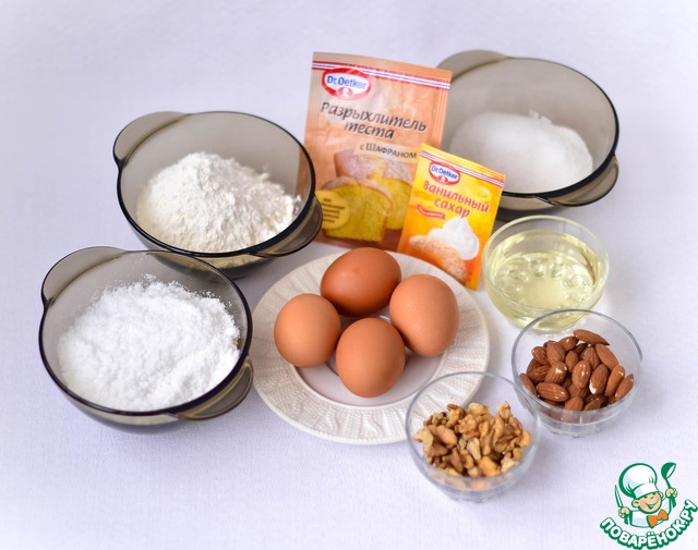 Продукты, которые понадобятся для орехово-кокосового бисквита.