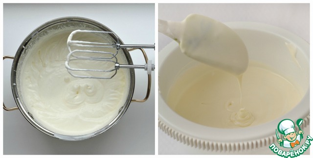 - Хорошо охлажденные (иначе не взобьются) сливки взбить до мягких пиков.