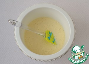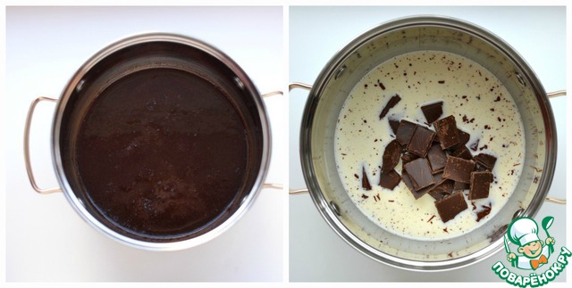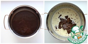- В шоколадно-сливочную смесь вести желатин. Перемешать. Дать остыть до комнатной температуры.