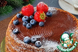 Вылить тесто в подготовленную форму. Выпекать 30-35 мин. Готовность проверять деревянной шпажкой. Если она выходит сухой, бисквит готов.