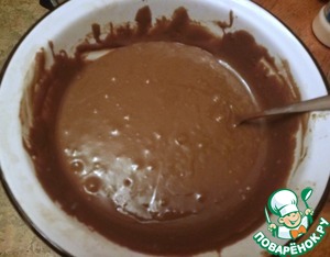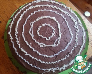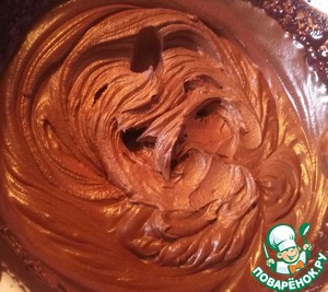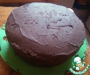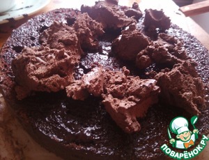 Жидким, не взбитым шоколадом, пропитываем коржи.
