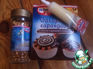 Я использовала сахарные карандаши и золотистые сахарные бусинки. -