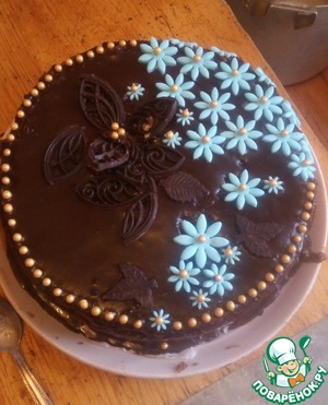 Ромашки здесь из сахарной мастики, а бусинки и шоколадные лепестки - все тот же любимый декор от фирмы «Dr. Oetker».