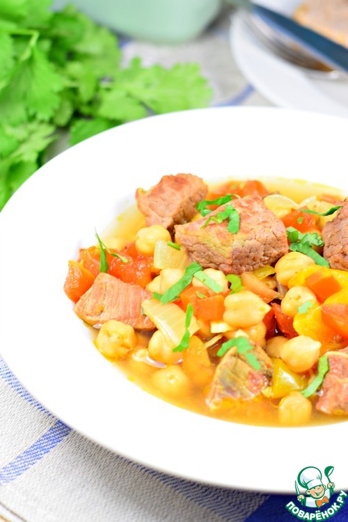 На мясо - отваренный заранее нут (приведен вес уже отварного нута) -