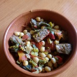 [+5]У меня посуда почти вся темноватая, поэтому и фото такое получилось. Но! Само блюдо очень яркое и пёстрое (красный перец, рыжая морковка, желтый нут, зелень - красота). Я немного передержала в духовке, не вынула сразу, подумала, что нут-то замороженный, вытопит и спасёт. Так и получилось, но не получилось много бульона. И морковки в следующий раз поменьше добавлю (сейчас была одна штука грамм на 120, для меня сладковато).