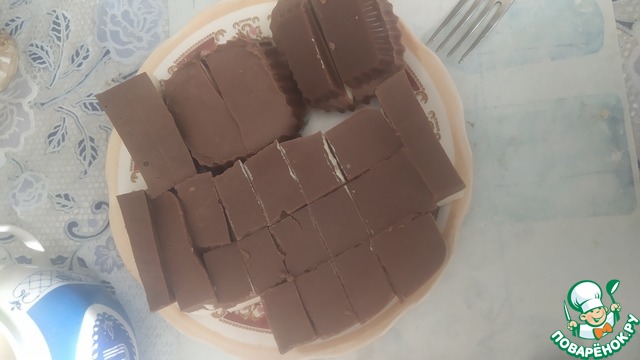 Я нарезала на конфетки, растопила шоколадную глазурь и полила сверху сеточкой.