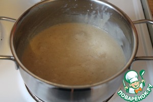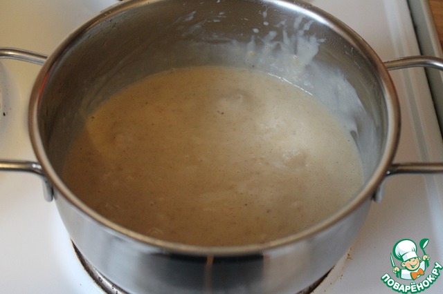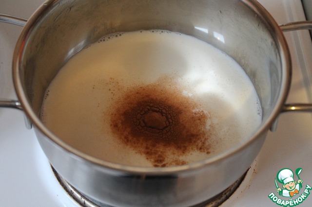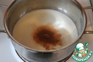 Готовим крем корица. В сотейнике подогреваем молоко с корицей до очень горячего, но не кипящего состояния.