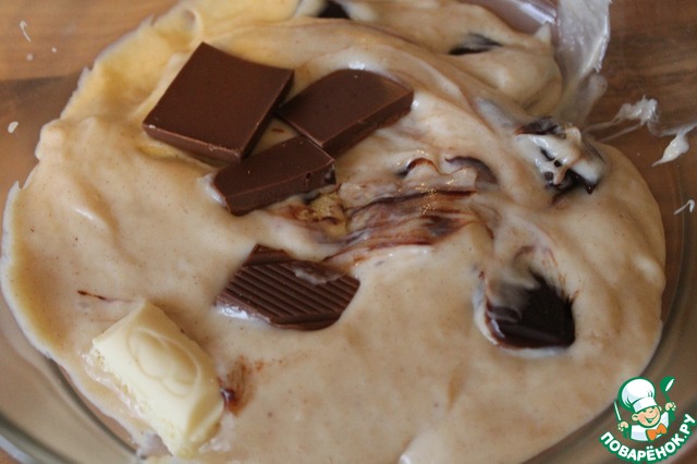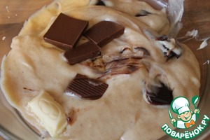 В горячий крем вводим три вида шоколада и хорошо размешиваем, чтобы он растаял.