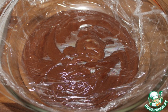 Накрываем крем пищевой пленкой так, чтобы она касалась поверхности крема. Когда он чуть-чуть остынет, добавляем в него сливочное масло и размешиваем. Крем корица готов.