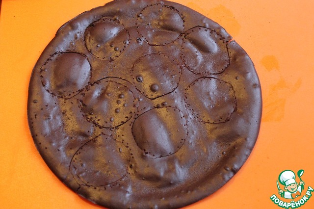 Распределяем бисквит равномерным слоем по силиконовой форме, выпекаем при 160 градусах 10-12 минут. Ножом или с помощью формочки вырезаем из бисквита кружки по размеру стаканов, в которых будем собирать десерт.