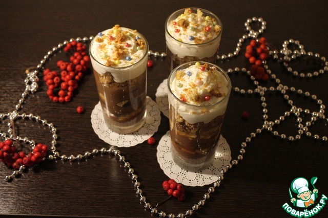 Веррины - это салаты, закуски или десерты, приготовленные в стеклянном бокале. Я предлагаю Вам приготовить в новогоднюю ночь десертные веррины - с двумя видами крема, хрустящим миндальным штрейзелем и карамелизированными яблоками... Уже захотелось попробовать? Заходите на угощение!)