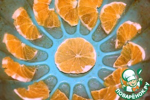 На стенки силиконовой формы выложить половинки кружочков апельсина.