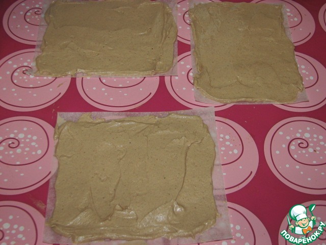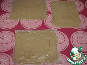 Распределить тесто тонким слоем по всей поверхности листа ножом или кондитерским шпателем.
