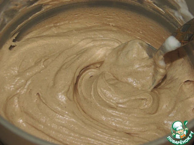 В масляную смесь ввести белки, чередуя с просеянной мукой.