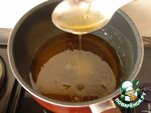 Когда Вы обжарили лукумадес, растопите в кастрюльке мёд. Но мёд не кипятить.