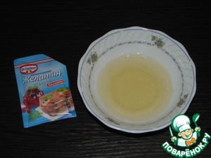 Желатин развести горячей водой (60 град) и тщательно размешать. Остудить до комнатной температуры.