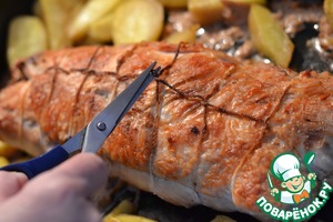 При помощи нити связать рулет, не очень плотно.