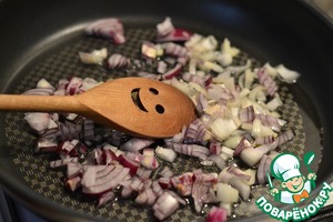 Лук репчатый мелко нарезать и обжарить на подсолнечном