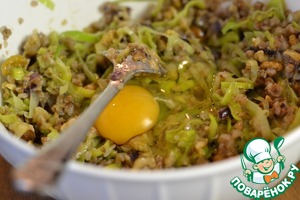 В остывший фарш добавить яйца и перемешать.