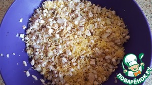 Соединить грибы, лук, сыр.