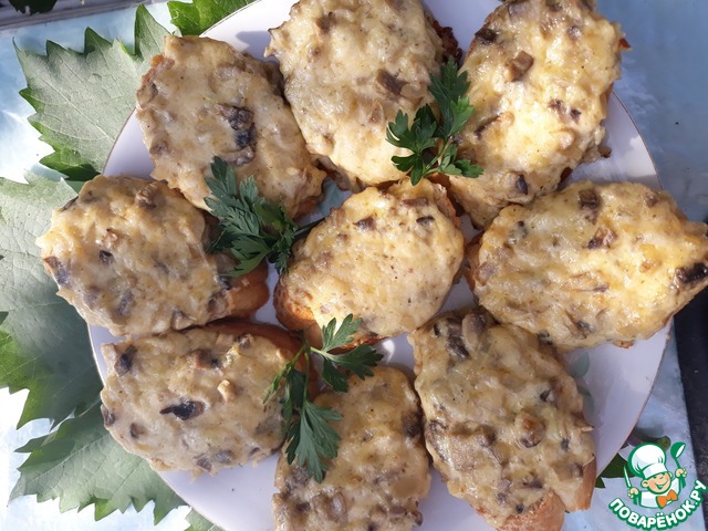 Рецепт «Горячие бутерброды с шампиньонами»: