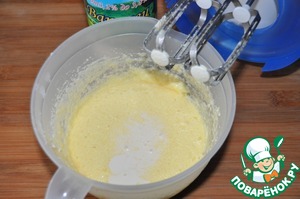 Добавляем любой кисло-молочный продукт, у меня варенец, взбиваем.