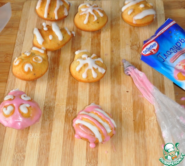 Далее для красоты рекомендую покрыть кексики глазурью, у меня от Dr. Oetker. Здесь вы найдёте целую палитру красок на вкус и цвет.