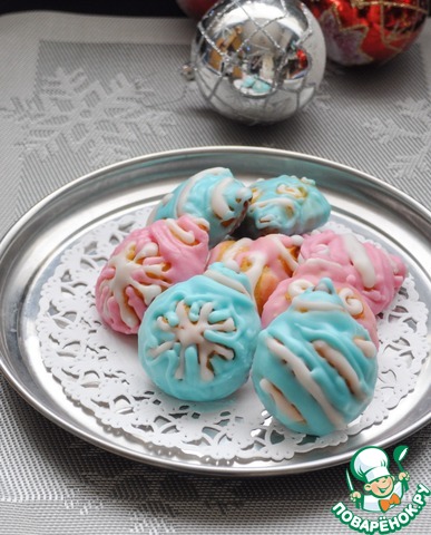 Мне подарили формочки в виде новогодних шаров, я их и решила раскрасить. Нагреваем воду до кипения, выключаем, кладём пакетик с глазурью, нагреваем 3-5 минут. Для удобства рисования переносим глазурь в целлофановый пакетик, отрезаем кончик и рисуем.