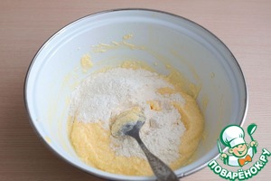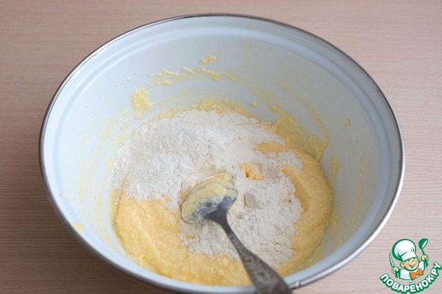 В подготовленную яично-масляную смесь добавить общее количество муки (около 2-х стаканов)