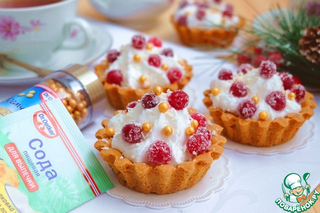 Рецепт «Пирожное "Корзиночки новогодние с клюквой"»: