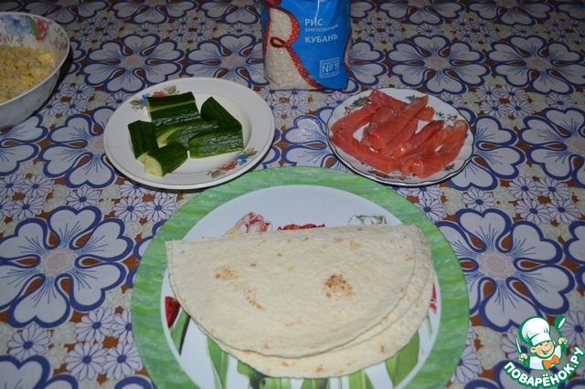 Рецепт «Закуска из лаваша с сёмгой и рисом»: