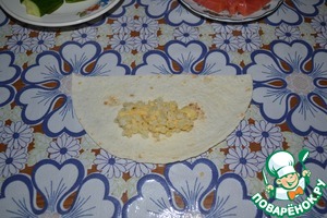 На край лаваша положить столовую ложку сырно-рисовой начинки.