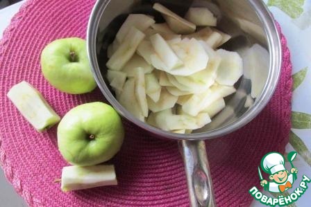 Яблоки, желательно кислых или кисло-сладких сортов, моем, очищаем от кожуры и тонкими ломтиками нарезаем прямо в кастрюльку. -