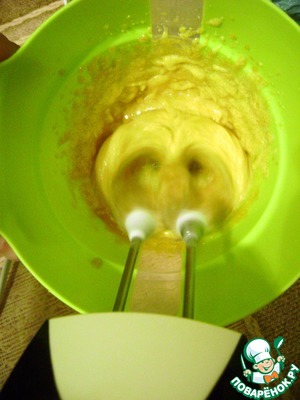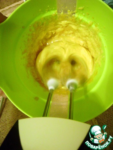 • Отделить белки от желтков. Желтки взбить с сахаром до белого цвета.