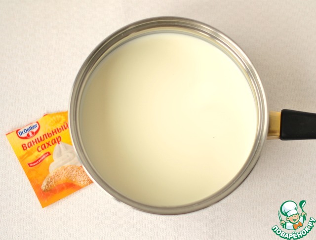 В отдельной ёмкости смешать оставшееся молоко с сахаром и ванильным сахаром Dr. Oetker. Довести до кипения.