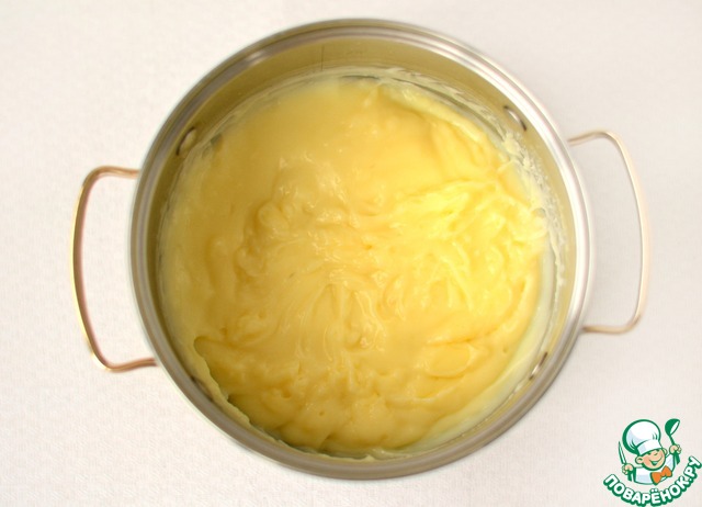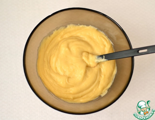 По ложке добавляя заварную массу, взбивать миксером на средней скорости.